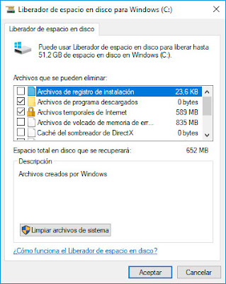 Tendremos una ventana muy similar a la de arriba, donde nos mostrará los archivos que Windows recomienda eliminar y el botón para ello. También tenemos una opción de buscar de forma adicional archivos del sistema, con lo que podemos limpiar aún más espacio.